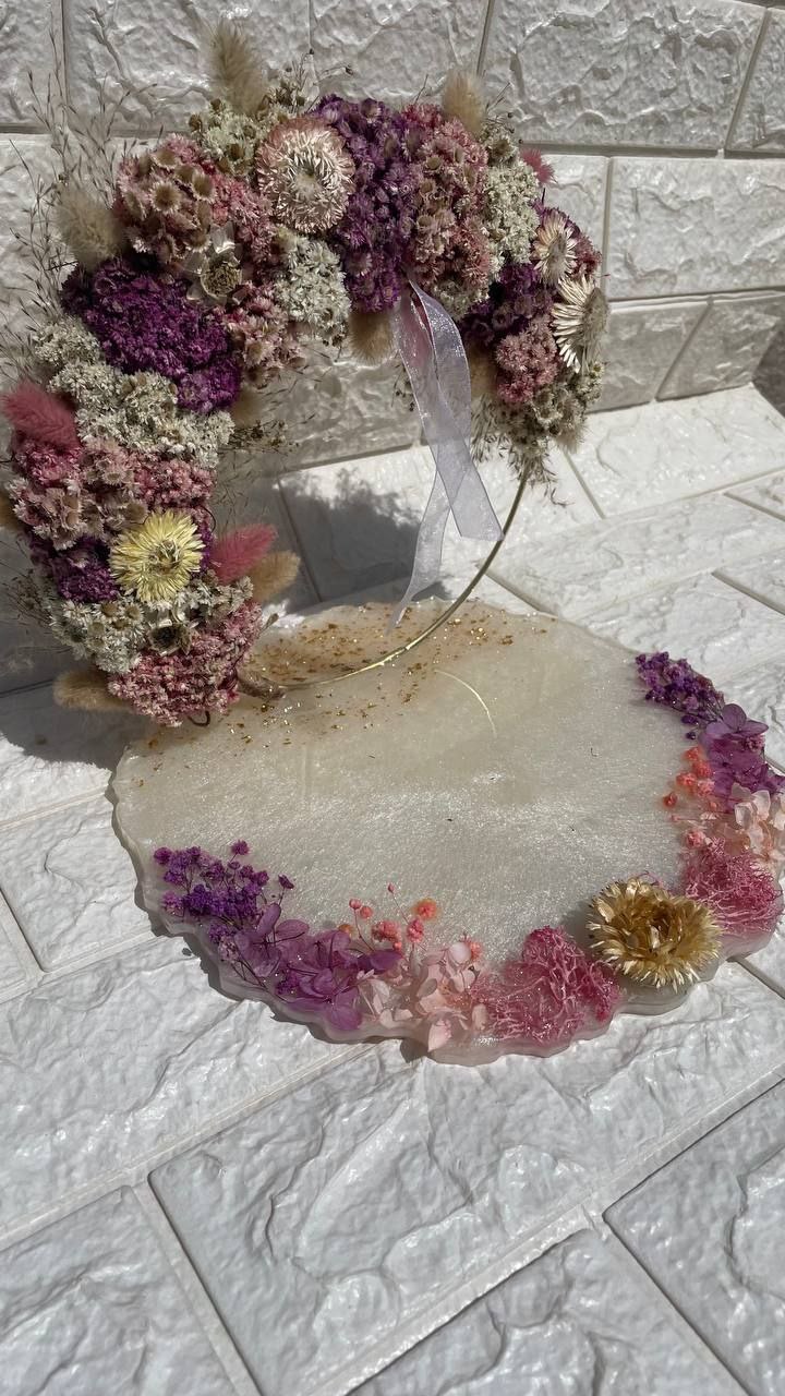Floral Loop – 8 inches, Resin Base – 10 inches, Hanging Resin plaque – 5 inches